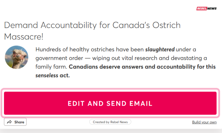 Actions, Juridique, Nature Demand Accountability for Canada’s Ostrich Massacre Par DELPHIAVALON 13 novembre 2025 16 novembre 2025 Demand Accountability for Canada’s Ostrich Massacre! https://actionbutton.nationbuilder.com/share/SPK-QENJQUU= Full horror of CFIA ostrich cull hits traumatized family Cet ingrédient qui n’est pas sur les étiquettes : La transglutaminase Laisser un commentaire Annuler la réponseVous devez être connecté(e) pour rédiger un commentaire.